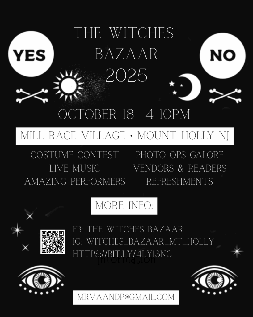 For more information about the Witches Bazaar, visit https://mainstreetmountholly.org/event/witches-bazaar-costume-contest/ or contact MRVAANDP@gmail.com.